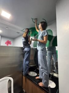 My team and I sketched and painted designs in the women’s and men’s church bathroom.
